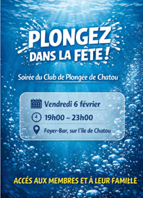 Vendredi 6 février, au foyer-bar de l'île de Chatou, aura lieu notre soirée du club !